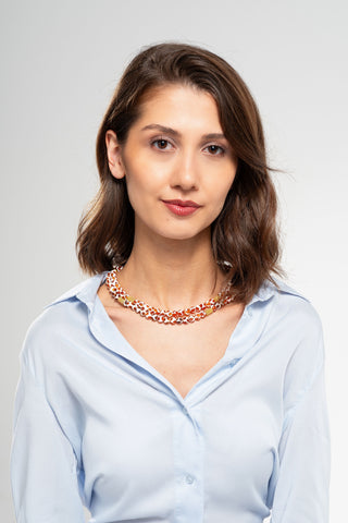 pembe kuvars kolye ve pembe kedi taşı küpe