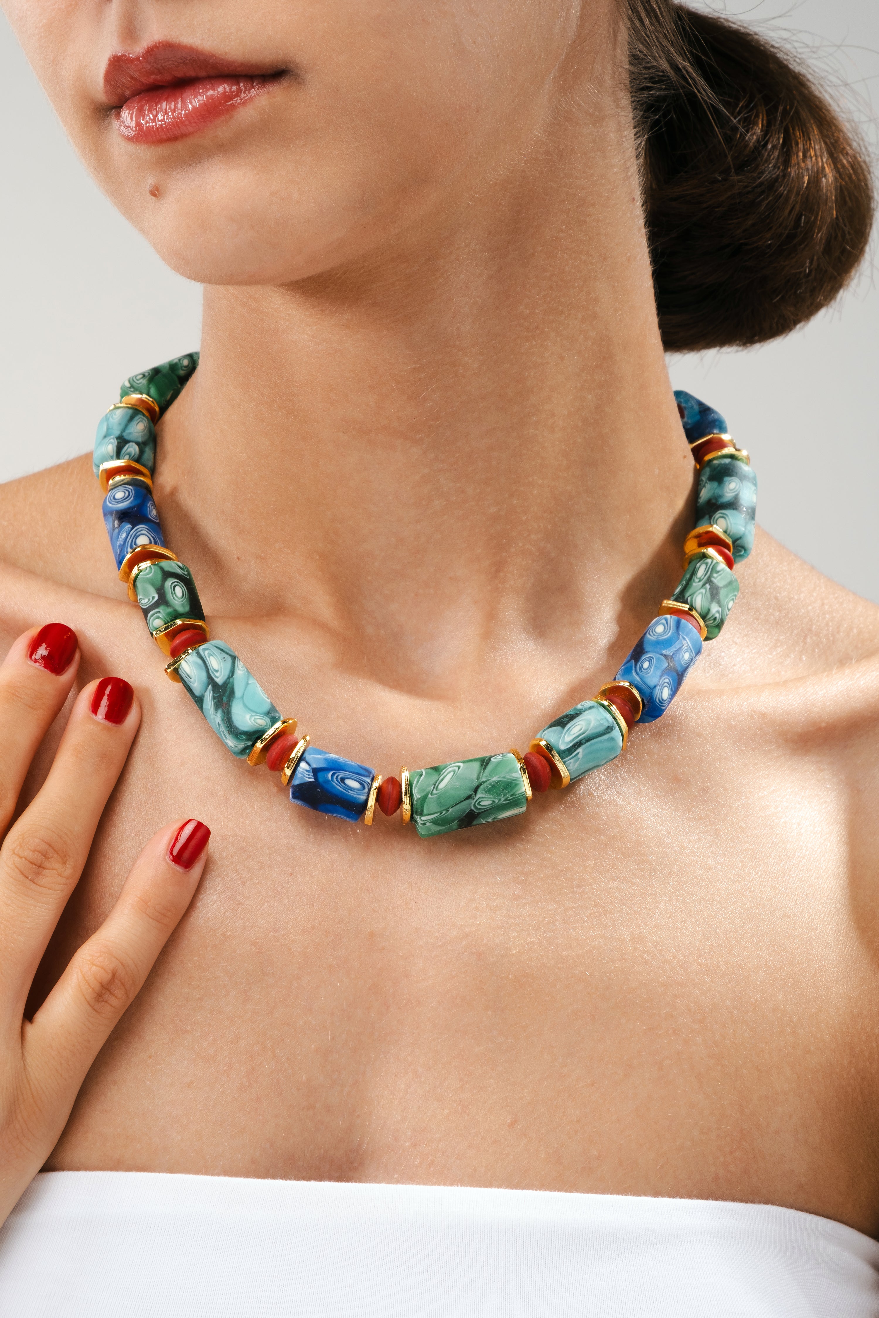 Ayoka Blue, Afrika’nın otantik ruhunu modern dokunuşlarla buluşturan özel bir tasarım. El yapımı Gana boncuklarının mavi tonlarıyla hazırlanan bu kolye; enerjisi, bohem şıklığı ve özgün stiliyle öne çıkıyor. Tamamen elde üretilen Ayoka Blue, her biri farklı hikâye taşıyan boncukların birleşiminden doğuyor ve stiline sanatsal bir dokunuş katmak isteyenler için benzersiz bir seçim sunuyor.