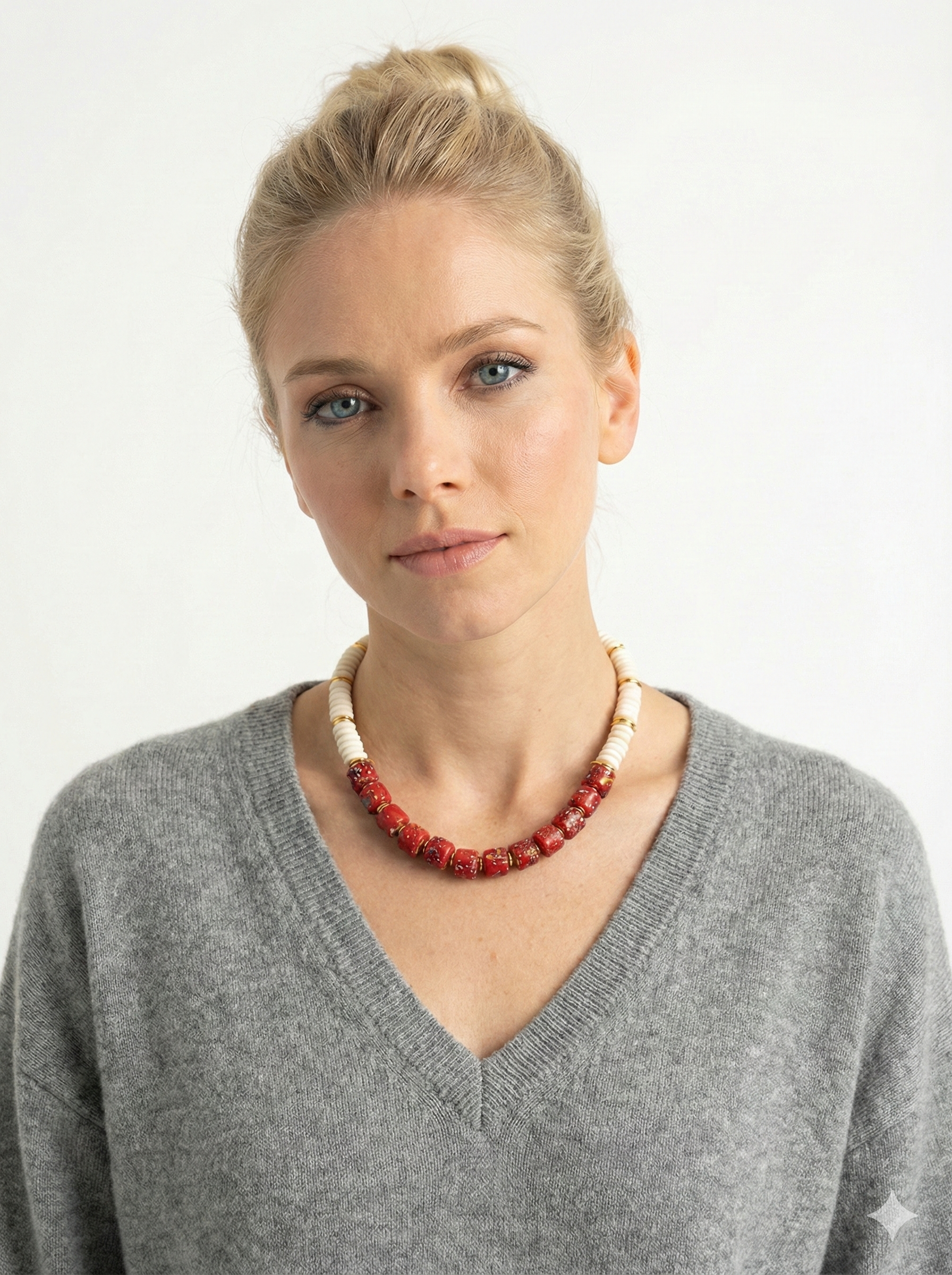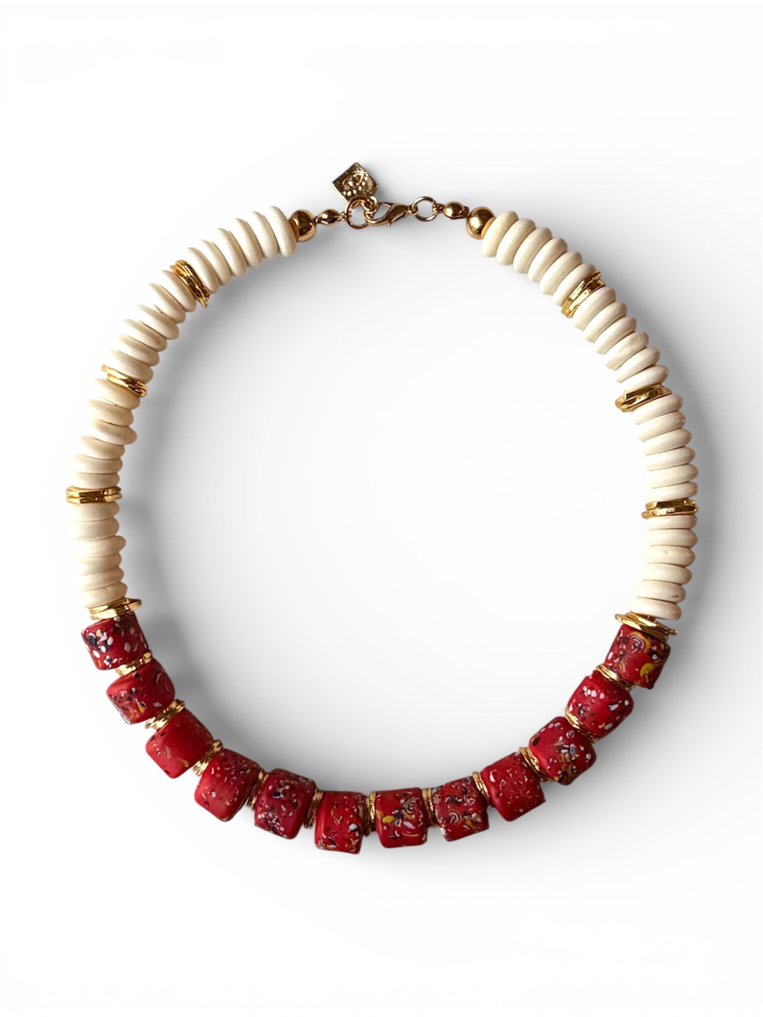 Kemik taşların doğal dokusu, cam boncuklarının karakterli ritmiyle buluşuyor. Bu kolye, yalın formlarla güçlü bir duruş sunan, zamansız bir stil tamamlayıcısı.