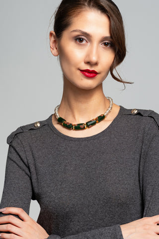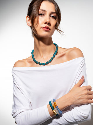 Tibet akiklerinin derin renkleri, Krobo boncuklarının yeniden hayat bulan camları ve buzlu taşların saf dokusu bir araya gelir.