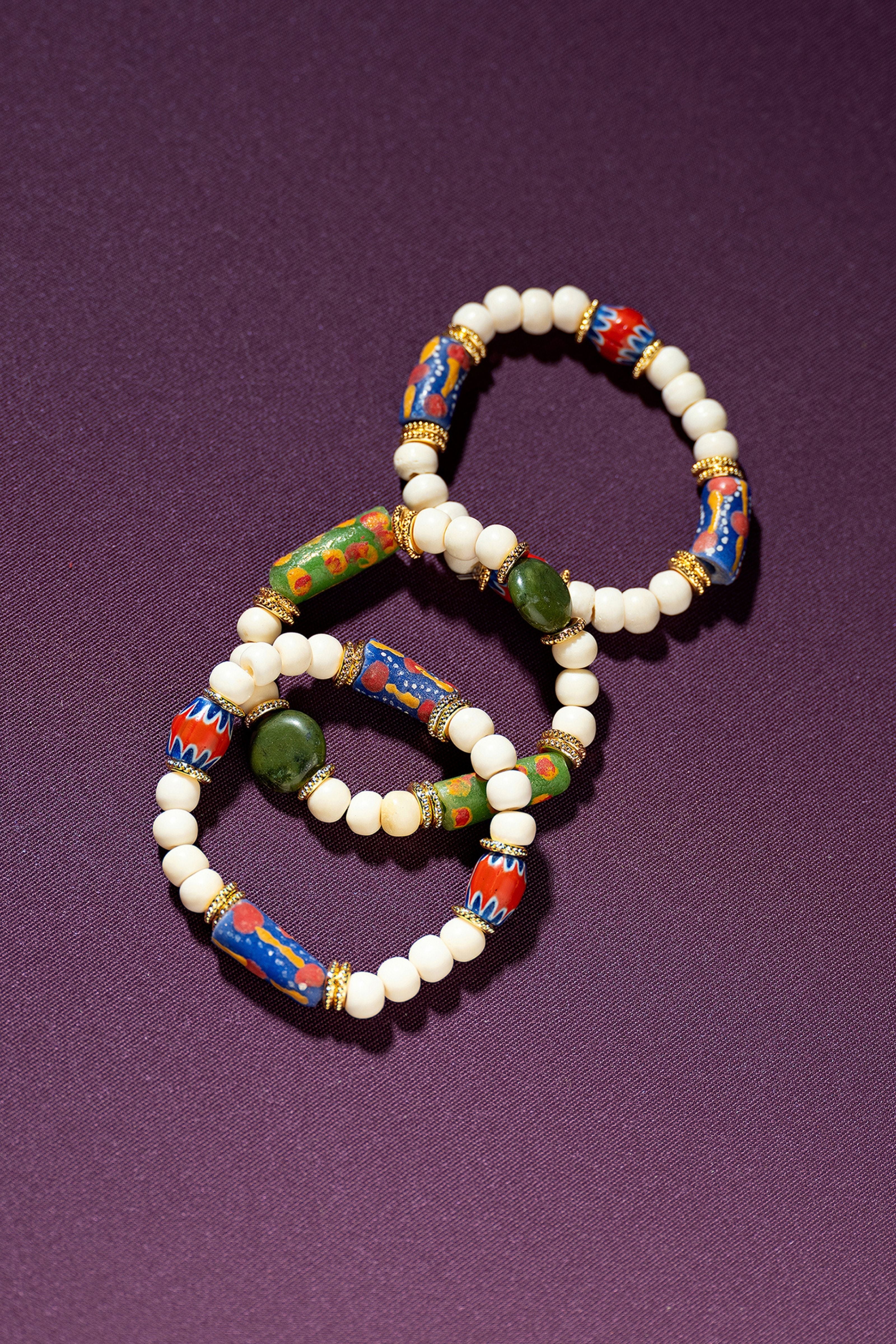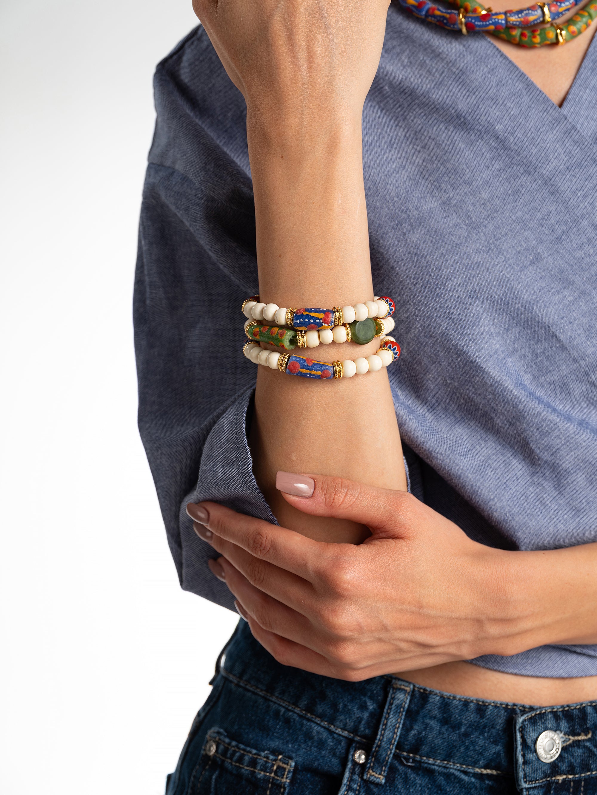 • Malzeme: Kemik boncuk, Krobo Boncuk, pirinç ve altın kaplama